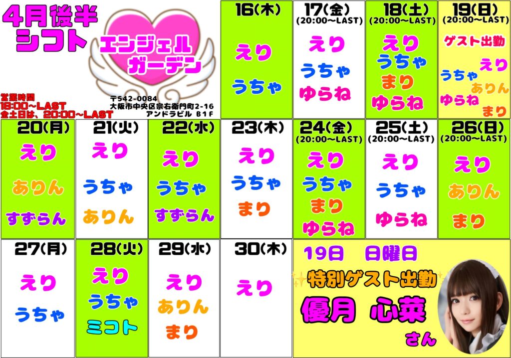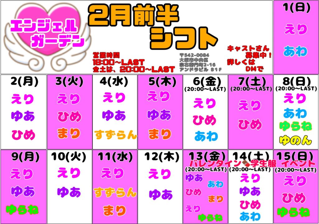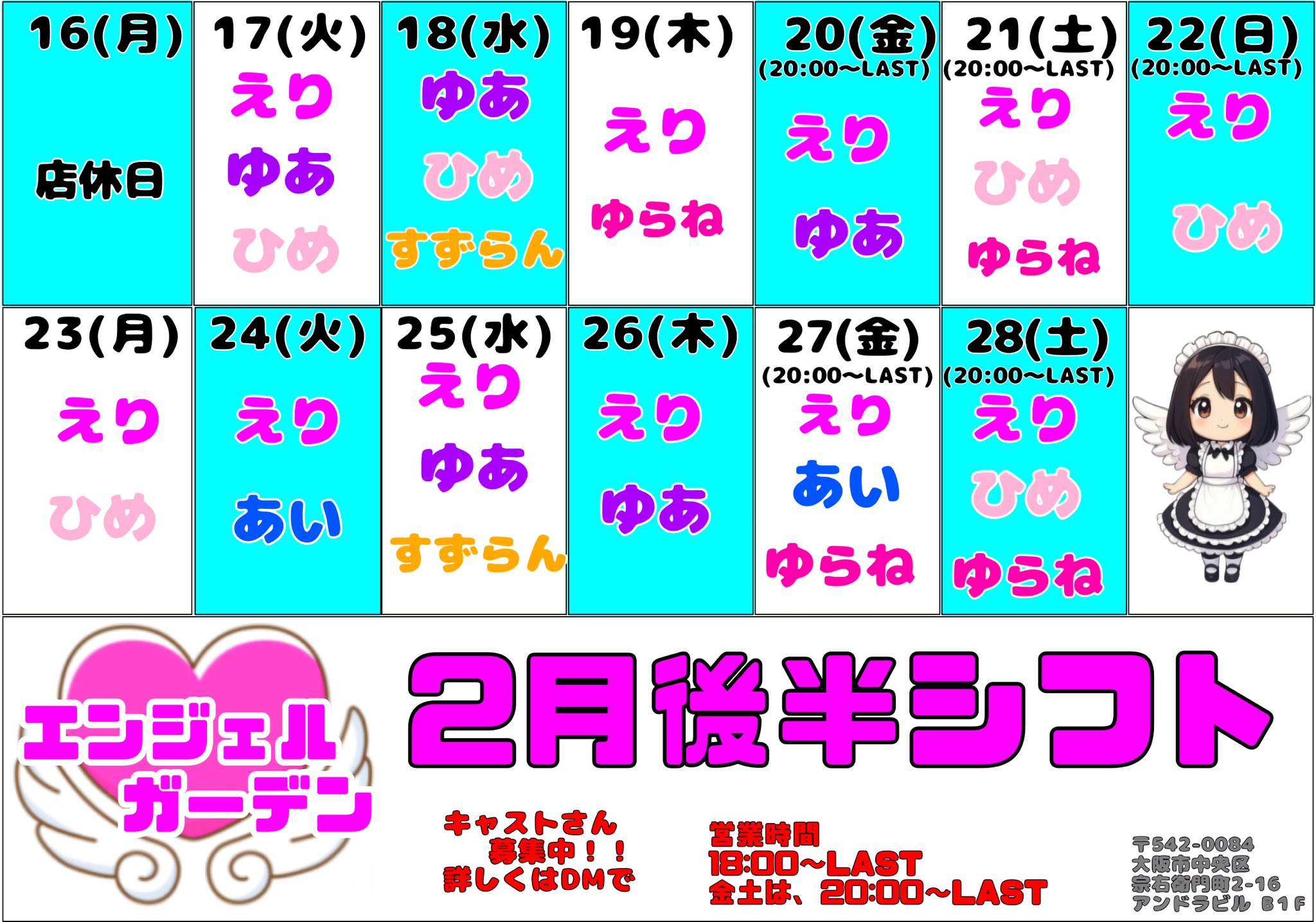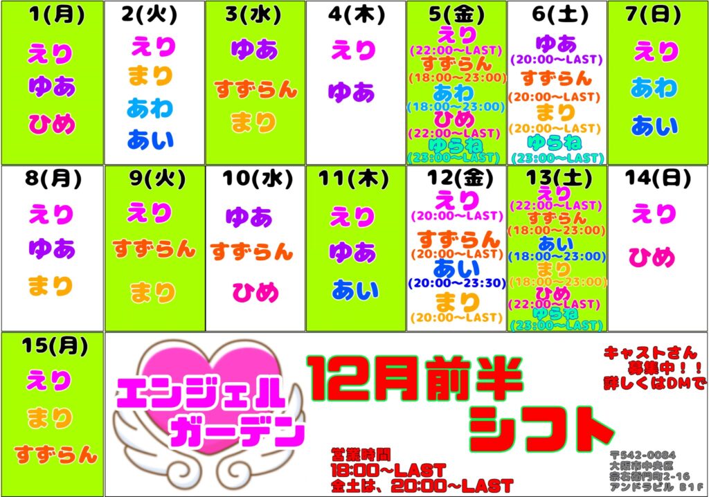 可愛い天使さん達が待っている宗右衛門町にあるメイド・コンセプト・バー、エンジェルガーデンです♡