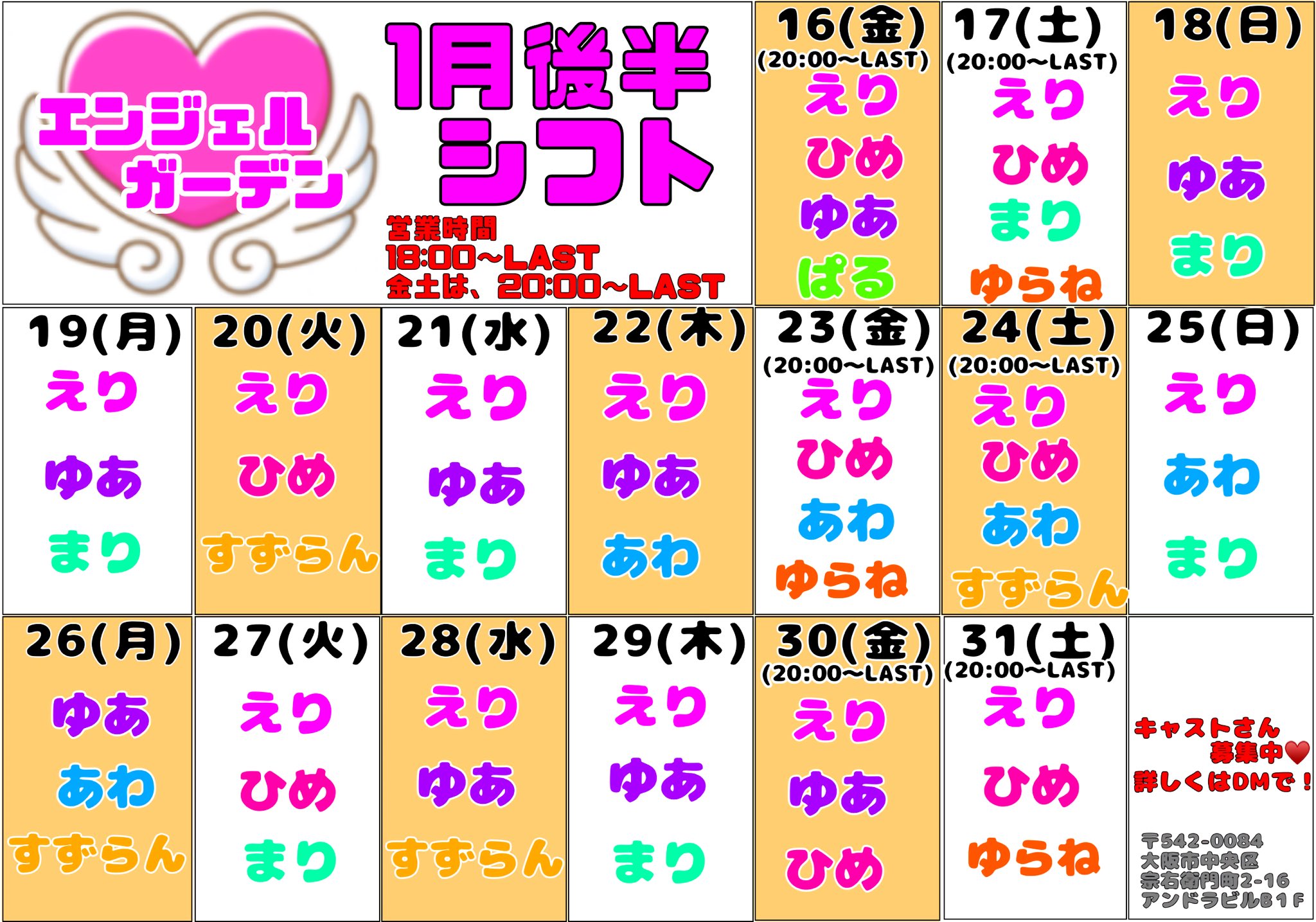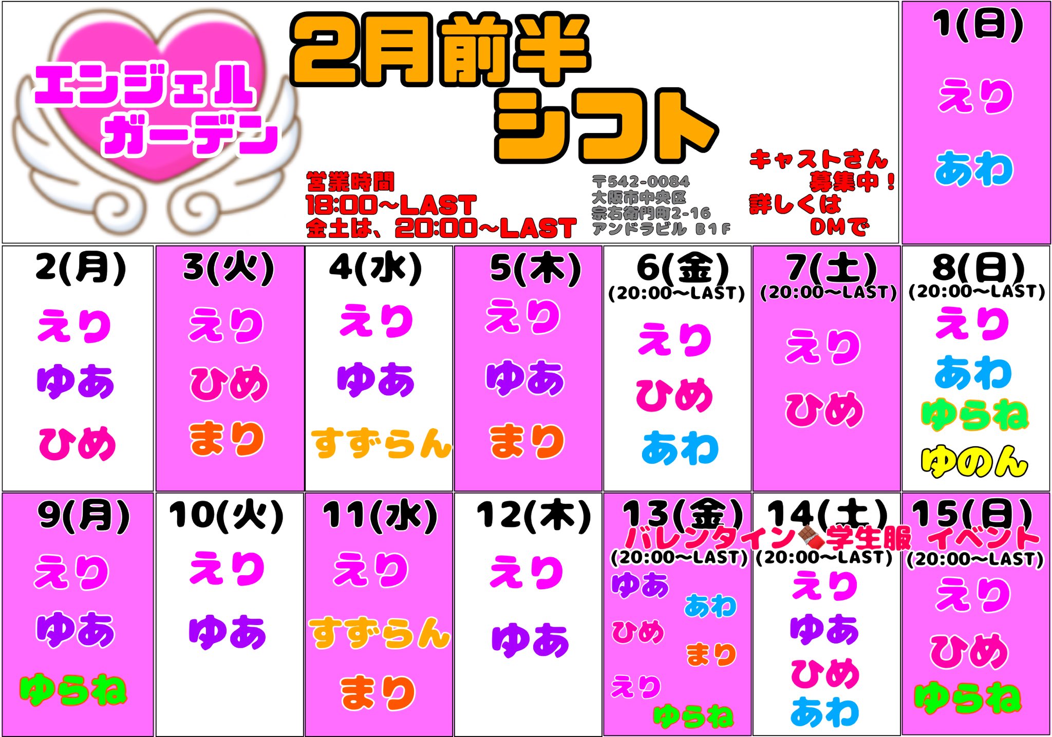 営業時間は18時〜LASTまで